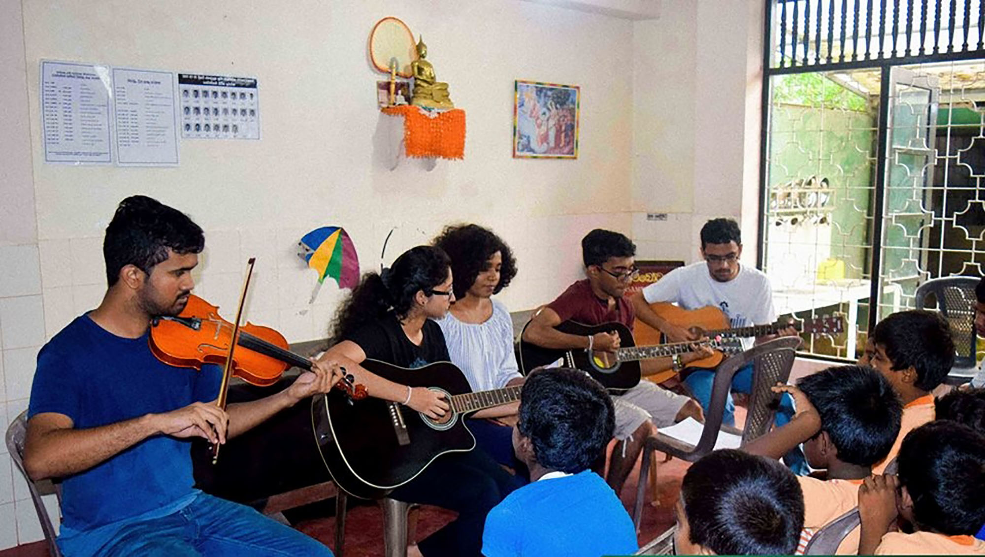 The outdoor session was much fun with a combined version of pass-the-ball and musical chairs, and an energetic session of Kabaddi. By this time, the children had quite well blended with our Rotaractors, that there could be seen little difference between them and us, resembling a set of siblings that had grown up together all their lives. When the crowd was thus worked up and exhausted, again the music crew stepped in and filled the air with the soothing sound of their instruments and voices, where everybody joined hands in singing along a set of popular songs, followed by a scrumptious lunch sponsored by the generous-hearted donors of Gift a Smile 17.2.