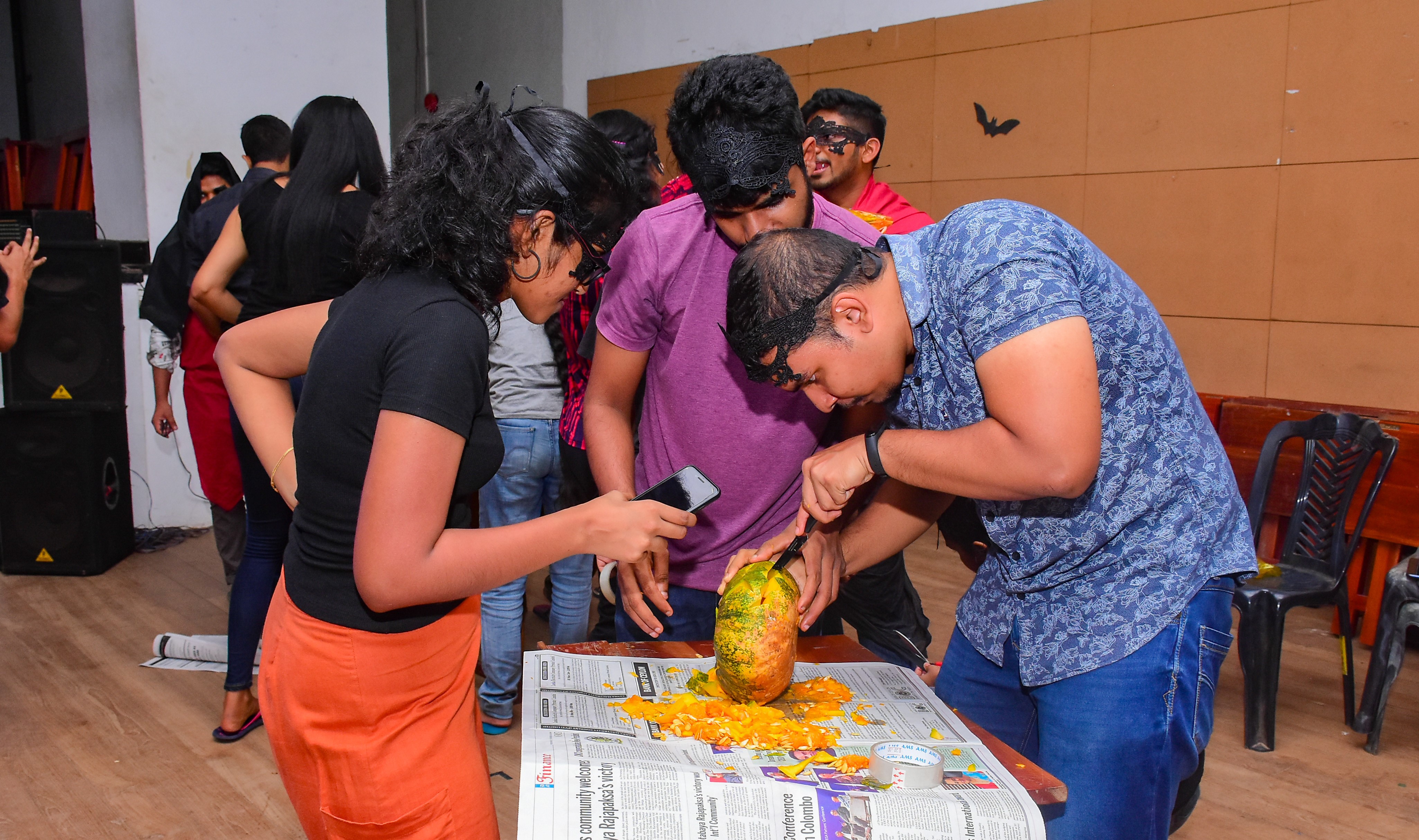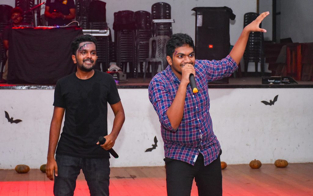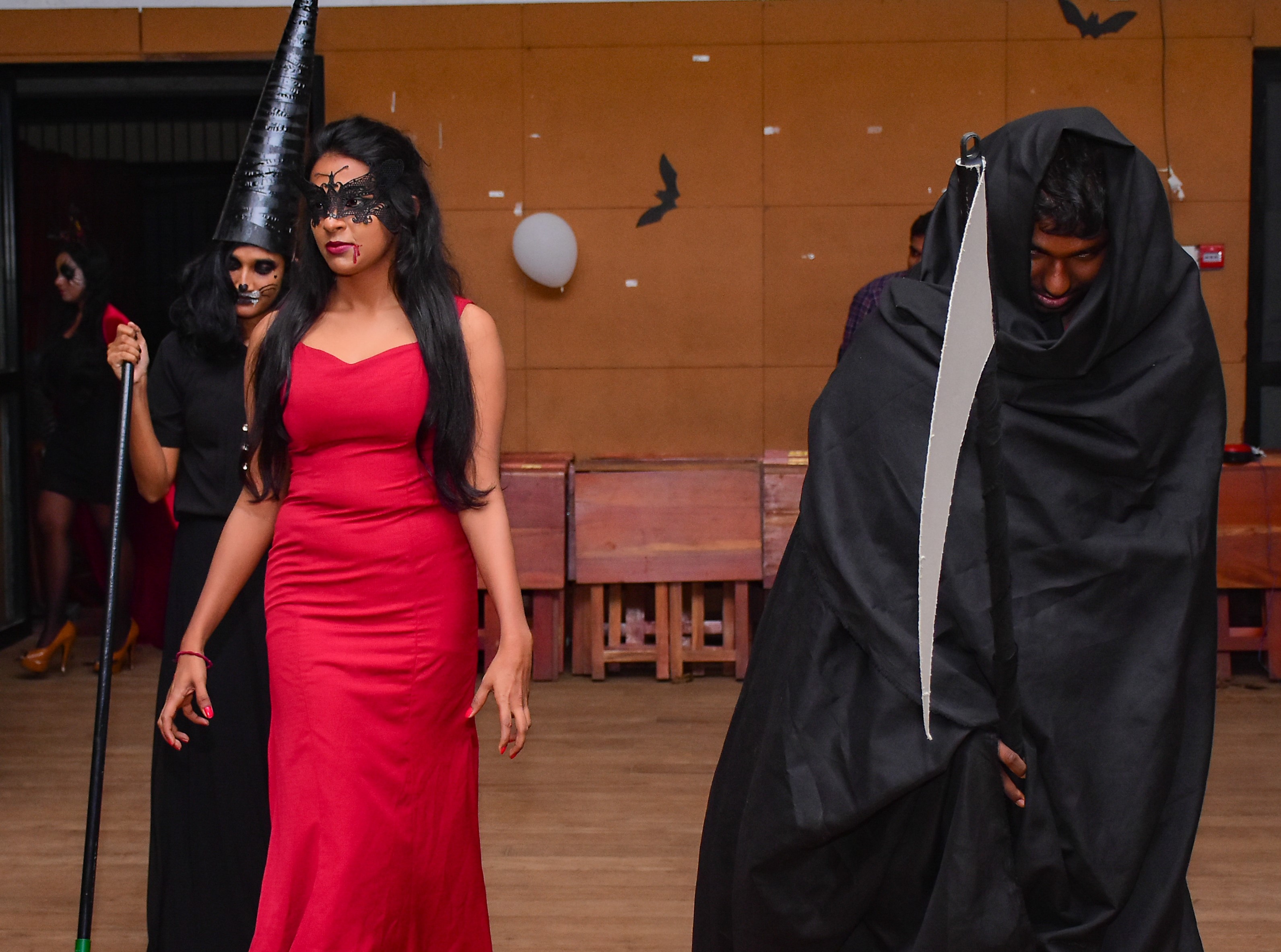 It was a dark cloudy night with the crickets creaking louder than ever. The moon shone majestically with all her might as Manul stood in the dark, oblivious to the sinister occurrences about to happen around him. He neither noticed the eerie mumbling sound of someone calling his name nor the dark figures faintly getting closer. At least not until a stone-cold hand clamped around his arm. He woke up with a start to Thushara’s calls ‘Manul, let’s move. We are running late.’ And thus began ‘Spooky Halloween 2019’.