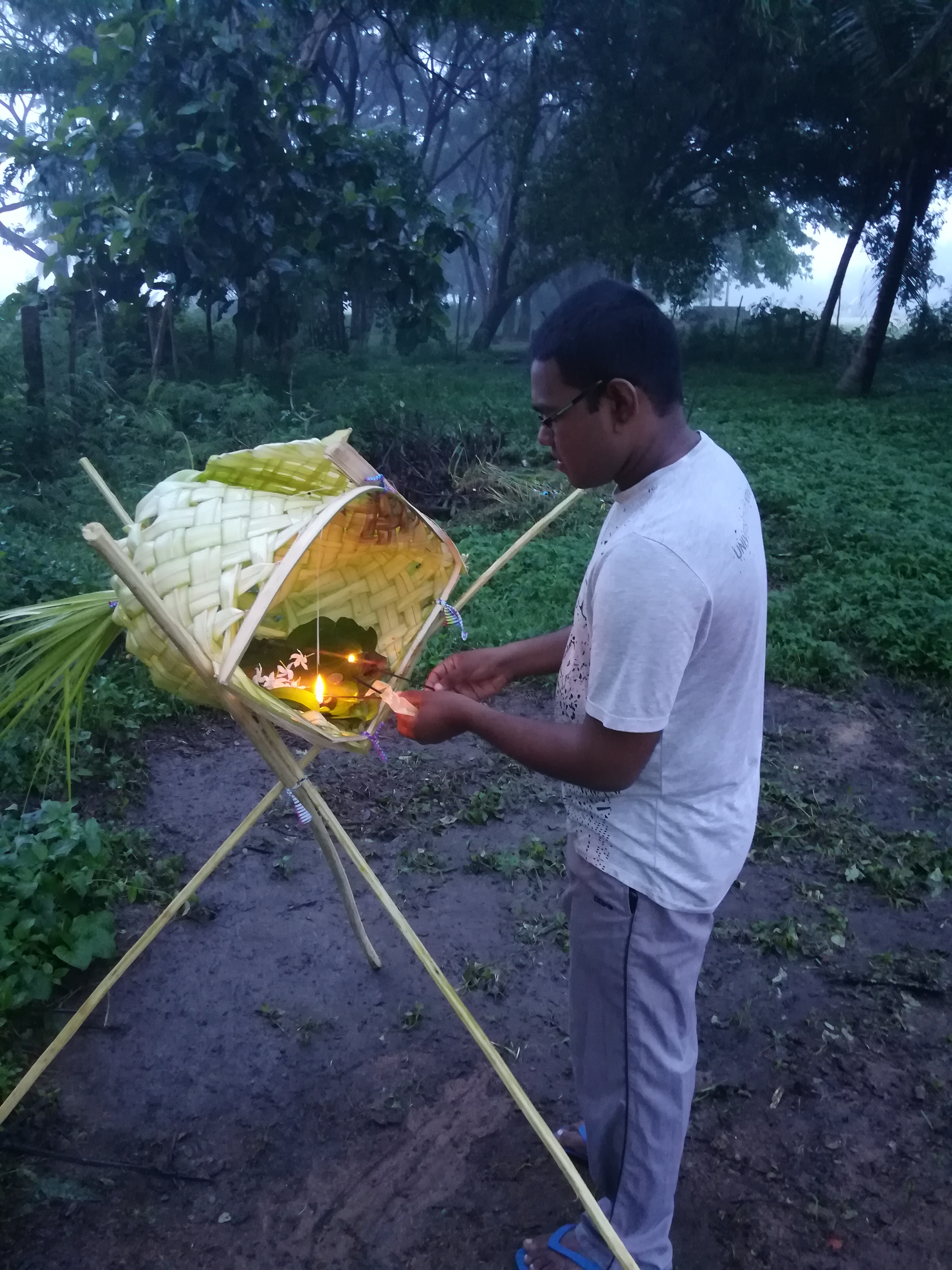 As soon as they arrived, the Rotaractors diligently prepared the area that the classroom was proposed to be built. The ground was cleaned with the help of the villagers, and necessary material were taken to the place for preparation. It was a beautiful evening before the dawn of the day for an amazing cause. As Sri Lankans, our Rotaractors did not forget their traditions, so they lighted up oil lamps around the ground area and engaged in religious activities with the hopes of witnessing a successful next day.