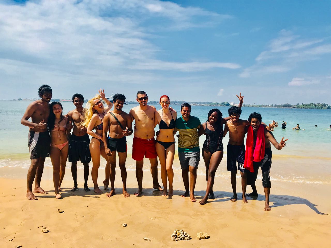 On the next day, everyone slept at least until 8.00 am. After having breakfast and a very delightful tea, we went to the jungle beach nearby, which was our main event for the day. There we spent many hours (at least four hours as I remember) enjoying the tropical weather and untidy waves. Most of them had few minutes of sunbathe on the beach. We took a lot of photos there.they also tried some local king coconuts, which they appreciated so much. Everyone had a traditional lunch, back at the hotel where we stayed and after resting for sometime, we then departed from the hotel using trishaws, hoping to catch a public bus to Tissamaharama, to the hotel we booked to spend the night. The bus was very crowded and we had to try hard to get seats for our foreign guests.