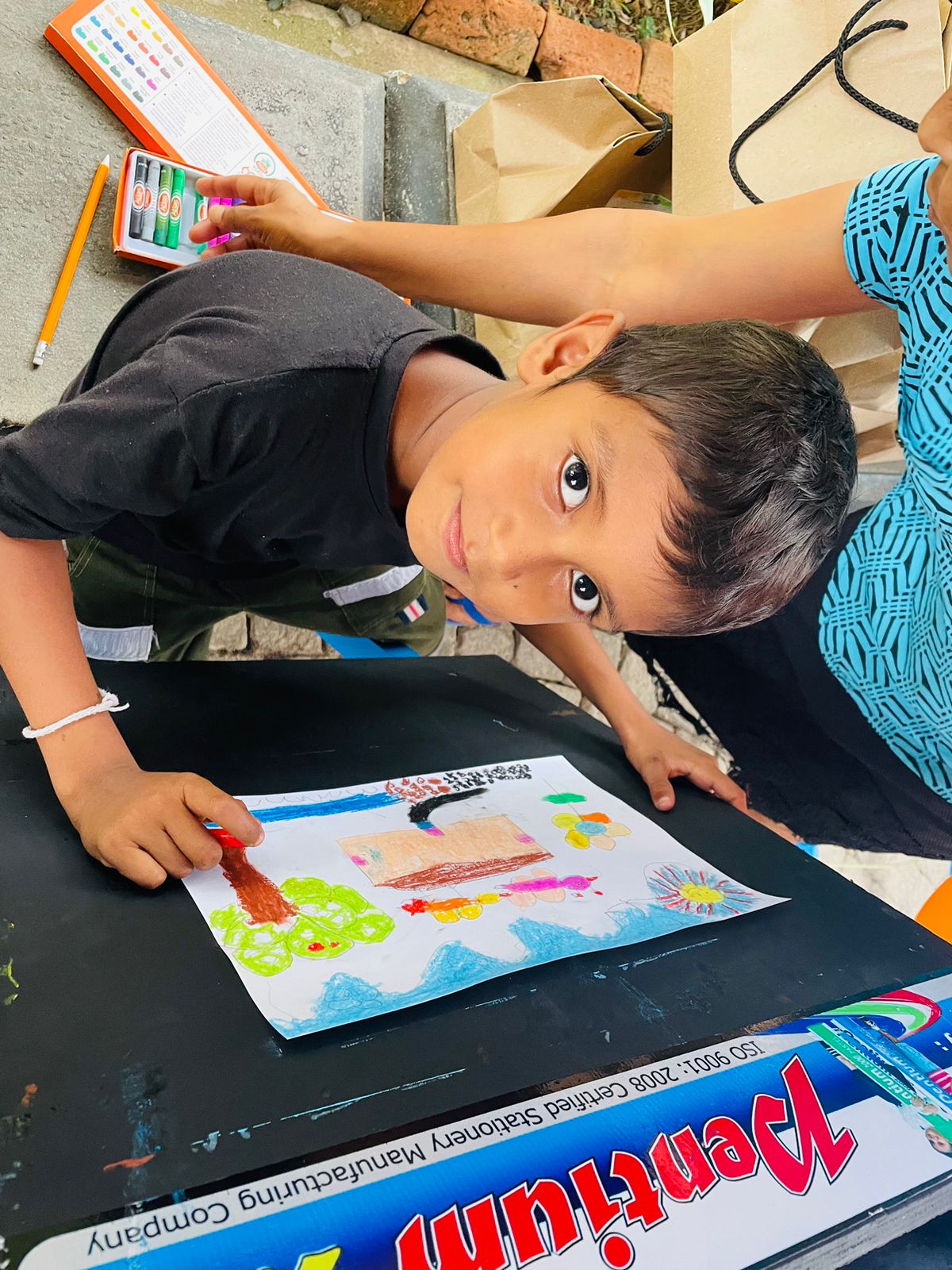 In a matter of hours, the 22nd arrived, and we embarked on the journey to the CCC House filled with hope, love, color, and happiness. Remarkable volunteers joined us, eager to assist the children with their drawings and participate in the music event. Every imaginable hue was employed to adorn the CCC House, and it was truly incredible to witness our months of hard work come to fruition in a matter of minutes.