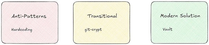 We’ve been on a journey from hardcoding -> environmental variables -> CI/CD variables -> and finally to modern tools like HashiCorp Vault as the “single source of truth.”