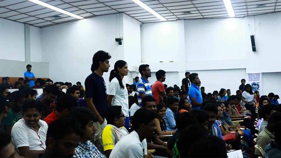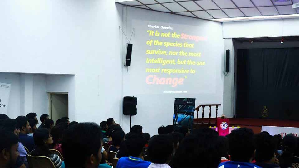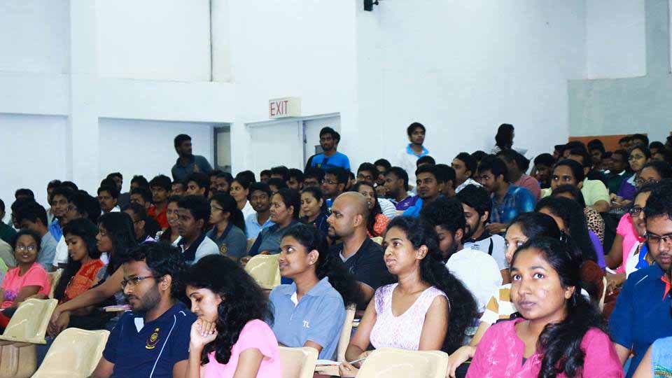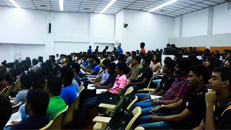 The second session for the day was an interactive presentation done by Mr. Janaka Pitadeniya, Associate Director, Virtusa Polaris who has a vast experience in dealing with clients all around the world. He mentioned the challenges that are encountered and the methods to overcome them. Furthermore, the audience was addressed on required attitudes in corporate environment and proper workplace ethics. The eagerness in the faces of the graduates was proof of a successful session.