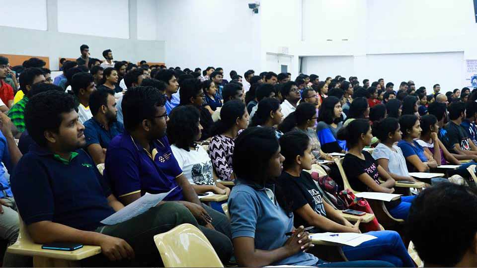 The audience was exposed to a couple of practical interviews conducted by him. The set of skills one should harness before stepping into the corporate world were discussed along with the values and traits sought after. The graduates inspired to explore their skills enthusiastically interacted with him gaining the best from the experienced professional.