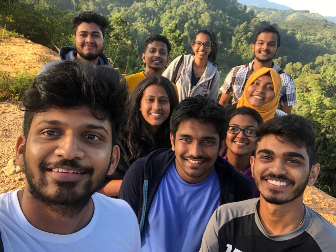 Eventually, we reached the peak by midday🌞 and the view was indeed as picturesque as was promised. We settled down for lunch and were treated to an epic 20-minute drizzle with nearly no cover💧. Thankfully, it soon subsided and after many selfies, group photos, and exasperated yells (by the Matured Ones Among Us🙄), we continued our merry way downhill. However, the mists soon overtook and we could barely see our way ahead. We stopped at a tea estate for a short break which inevitably resulted in more selfies. Soon, by some miracle, we all managed to descend against the mists and make it to the buses🚌.