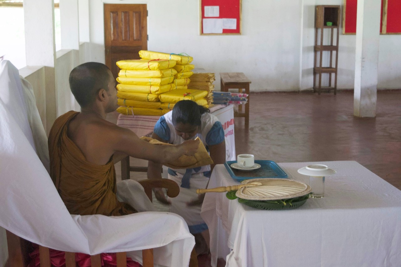 Members of Rotaract Mora along with our president Rtr. Paveen Perera and his parents joined hands with us on the day of the event to complete the project successfully. The morning session was held at Hambegamuwa Rajamaha Viharaya. The reverend Theros and villagers helped us a lot to organize the place. The villagers offered us ‘Kiribath with Lunu Miris’ for our breakfast, and it was indeed a very delicious breakfast. The program started at 9.30 a.m. with a sermon by a Thero. Then, 18 pregnant mothers were gifted with essential goods and baby care products. Afterwards, everyone at the gathering enjoyed refreshments. Amidst all these events, a little baby walked up to the Dharma Hall and filled the place with its laughing and cute talking and grabbed everyone’s attention.