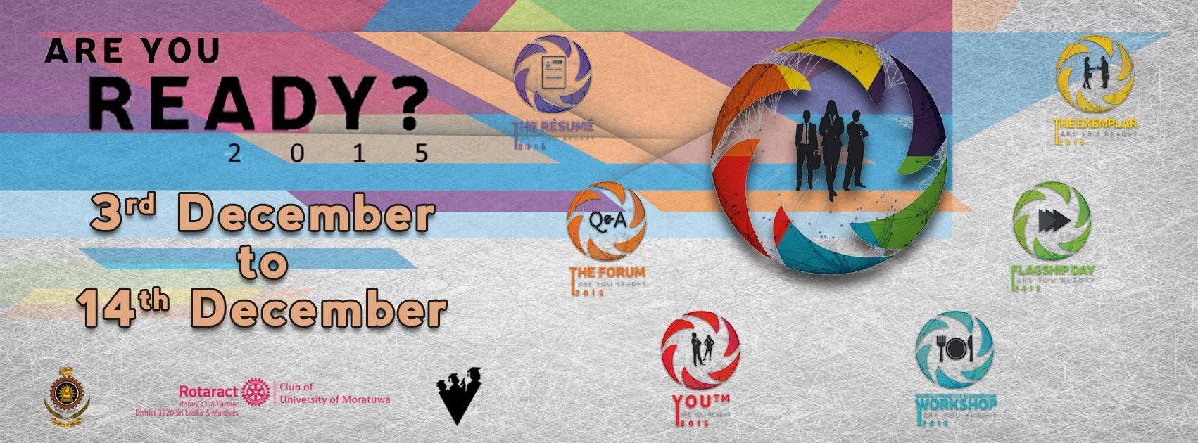 “Are You Ready?”, organized by the Rotaract Club of University of Moratuwa in collaboration with the Career Guidance Unit is a much awaited event in the university calendar which marks the careers’ week of the university. Introduced in 1998, this year marks the 20th “Are You Ready?”. The limelight of the event is on the mock or real interviews, conducted by prospective employers, for the passing out batch of the university. This serves as a pre-qualification for a future recruitment after the undergraduates receive their bachelor’s degree. The program paves way for employers to identify befitting and resourceful employees among the fresh graduates from the university.