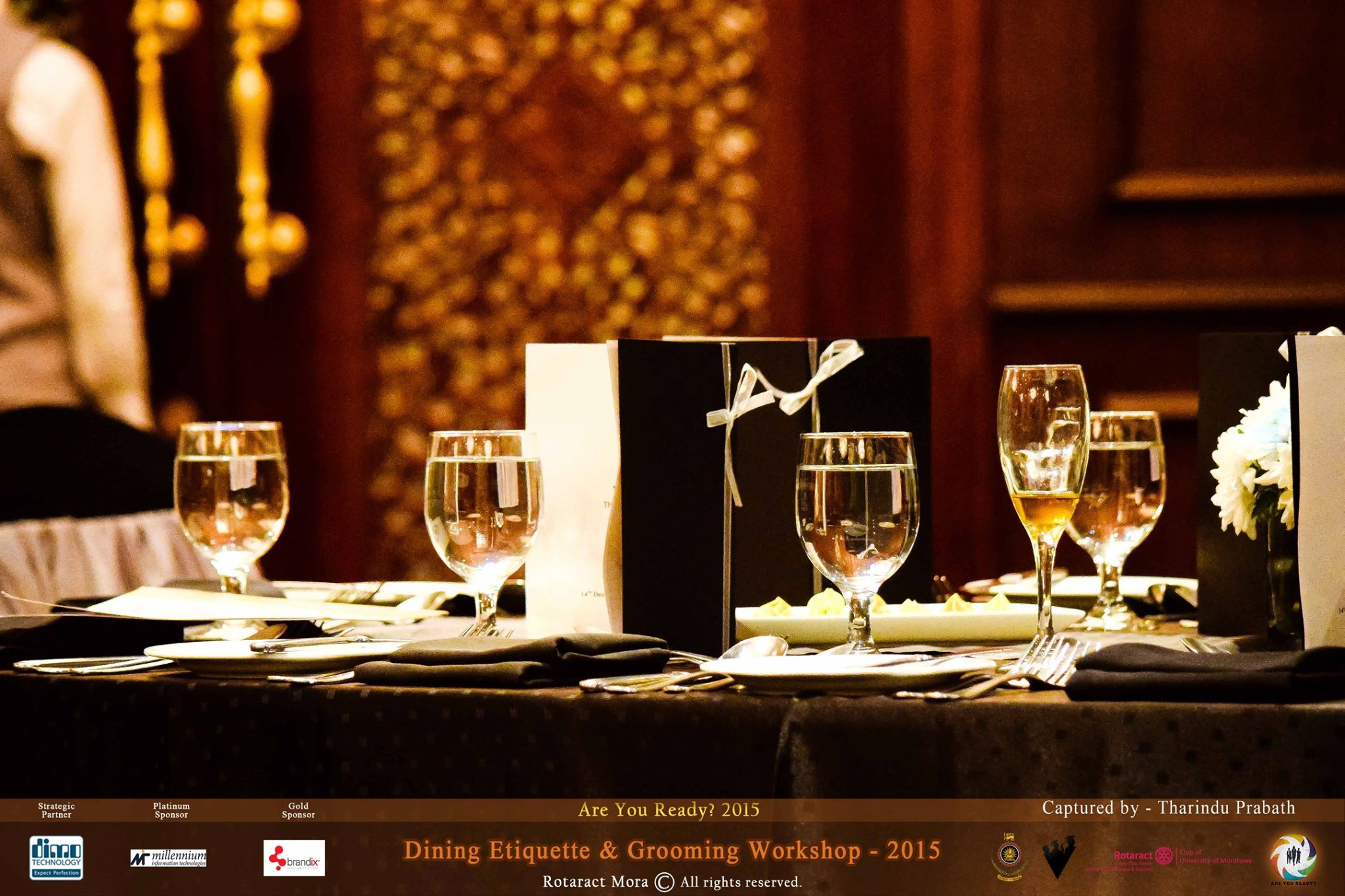 “The Dining Etiquette and Grooming Workshop”, “DE&G” was the concluding session of ‘Are You Ready?-2015’. This session was held on Monday, 14th December 2015 at Hall Victorian of Kingsbury Colombo in grand style. The event was attended by the final year undergraduates and Rotaractors from Rotaract Mora. The prime objective of the event was the sharpening soft skills such as polite and professional behavior, social manners, dining etiquette and personal grooming.While experiencing an evening of elegance the participants also accumulated life changing experience not only on perfecting the art of grooming and dining but also a captivating dinner.