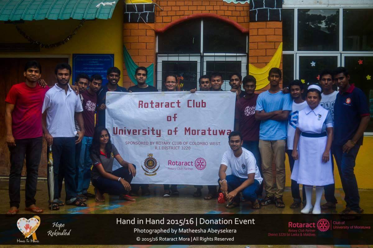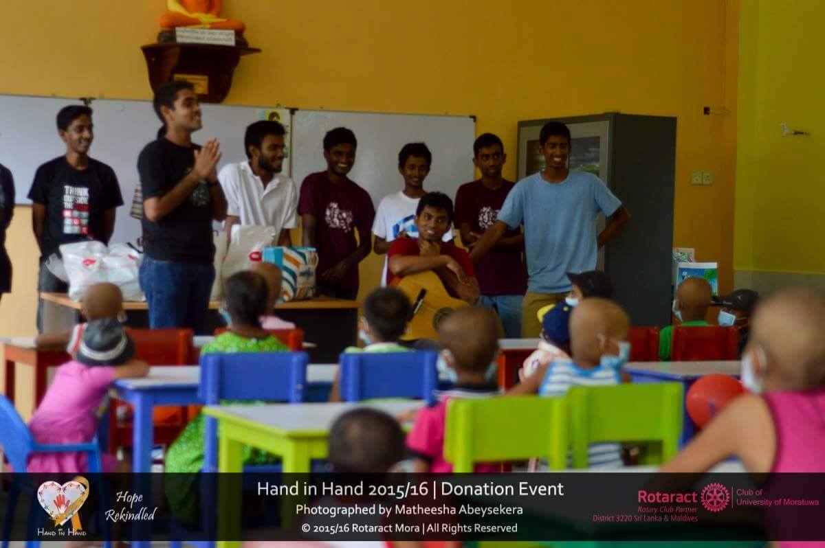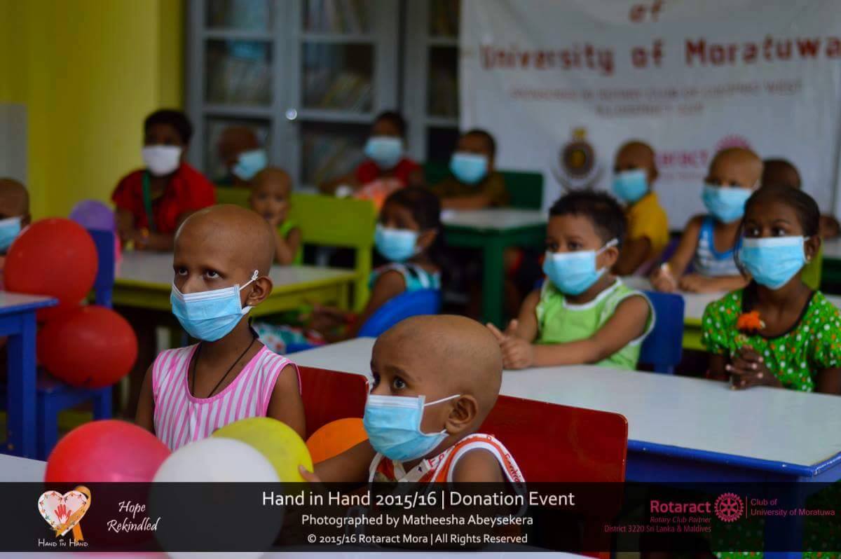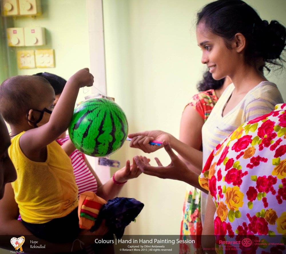 The enthusiastic Rotaractors of the Rotaract Club of University of Moratuwa carried out their annual community service project “Hand in Hand” at the National Cancer Hospital, Maharagama on 31st May 2016, focusing on enhancing the mental health of the children suffering from cancer. The project was initiated to upgrade the living conditions and mentality of the children suffering from this deadly disease and to create awareness about cancer among the public.