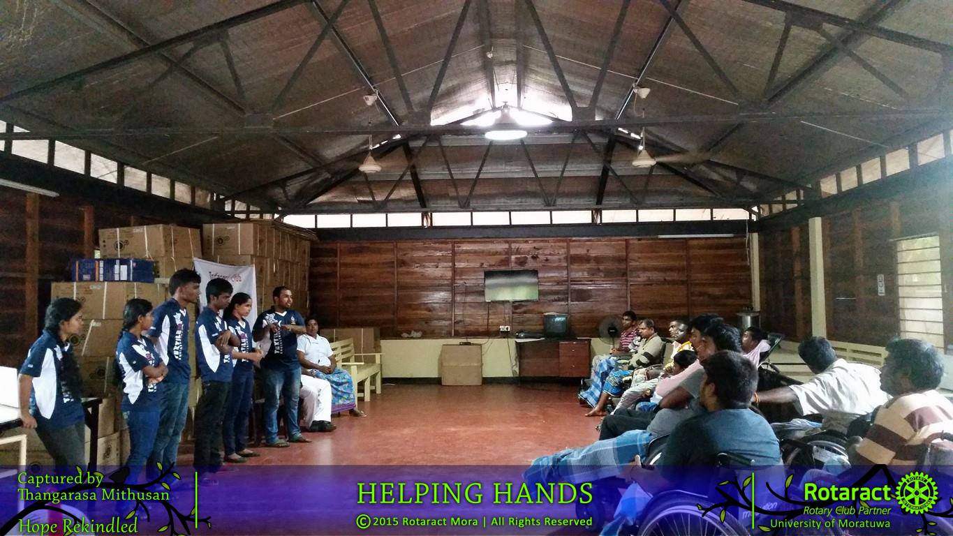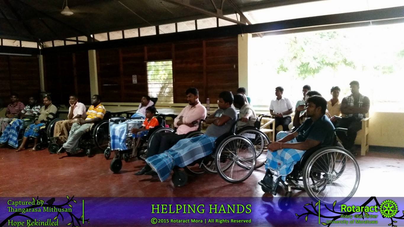 Vaikarai is having spinal cord injured people who are outcast from the normal human society and living alone with the help of others at a small wooden building without proper basic facilities. Spinal cord injury (SCI) is an unspeakable injury to the spinal cord resulting in a change, either temporary or permanent, in the cord’s normal motor, sensory, or autonomic function. Helping Hands is a first Rotaract community service program at Tamil area for making a change in physically and mentally in disabled people who are still in dark and depression by their disability.