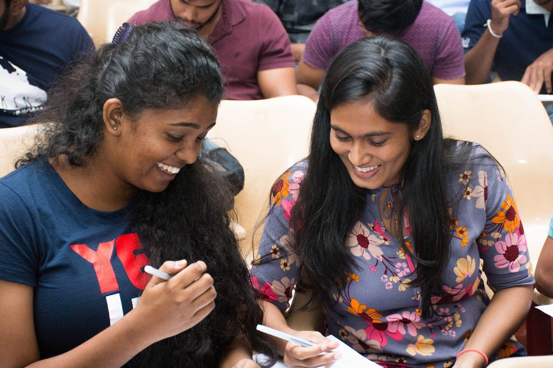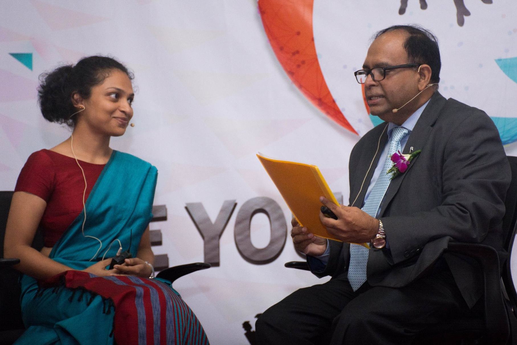 Then came the most awaited and fun-filled part of the session; the mock interviews! Dr. Mahesh called onstage four interviewees with four different personalities and acted out interviews to display the good and bad traits of each of them. The first interviewee was a very shy, timid but qualified character, coming from a rural background. The second interviewee was a casually dressed, not much organized, happy-go-lucky one with a knack for coding. Then came in a famous actress who was looking for a few extra bucks to accommodate her extravagant lifestyle. Lastly came a well-organized and well-dressed graduate with all the necessary qualifications. After all four interviews were done, Dr. Mahesh popped the most obvious question, “Who would get the job?”. Most of the audience thought the answer would be the fourth interviewee. To everyone’s surprise, Dr. Mahesh declared that he would hire all four, owing to the fact that all four candidates are unique in their own way and the company requires all four types of people. He explained that each candidate had their very own positive traits and strengths, all of which is useful for the employer. His message was that, all of us are unique in our own way and that we should believe in ourselves and face our interviews with confidence while expressing and presenting ourselves in the best way.