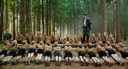 The theme of loss of identity and innocence can be seen during these scenes where Jojo joins Hitler’s youth camp for young aspiring children wanting to join Hitler’s army, this reveals how the youth were being ideologically poisoned and brainwashed from the beginning.