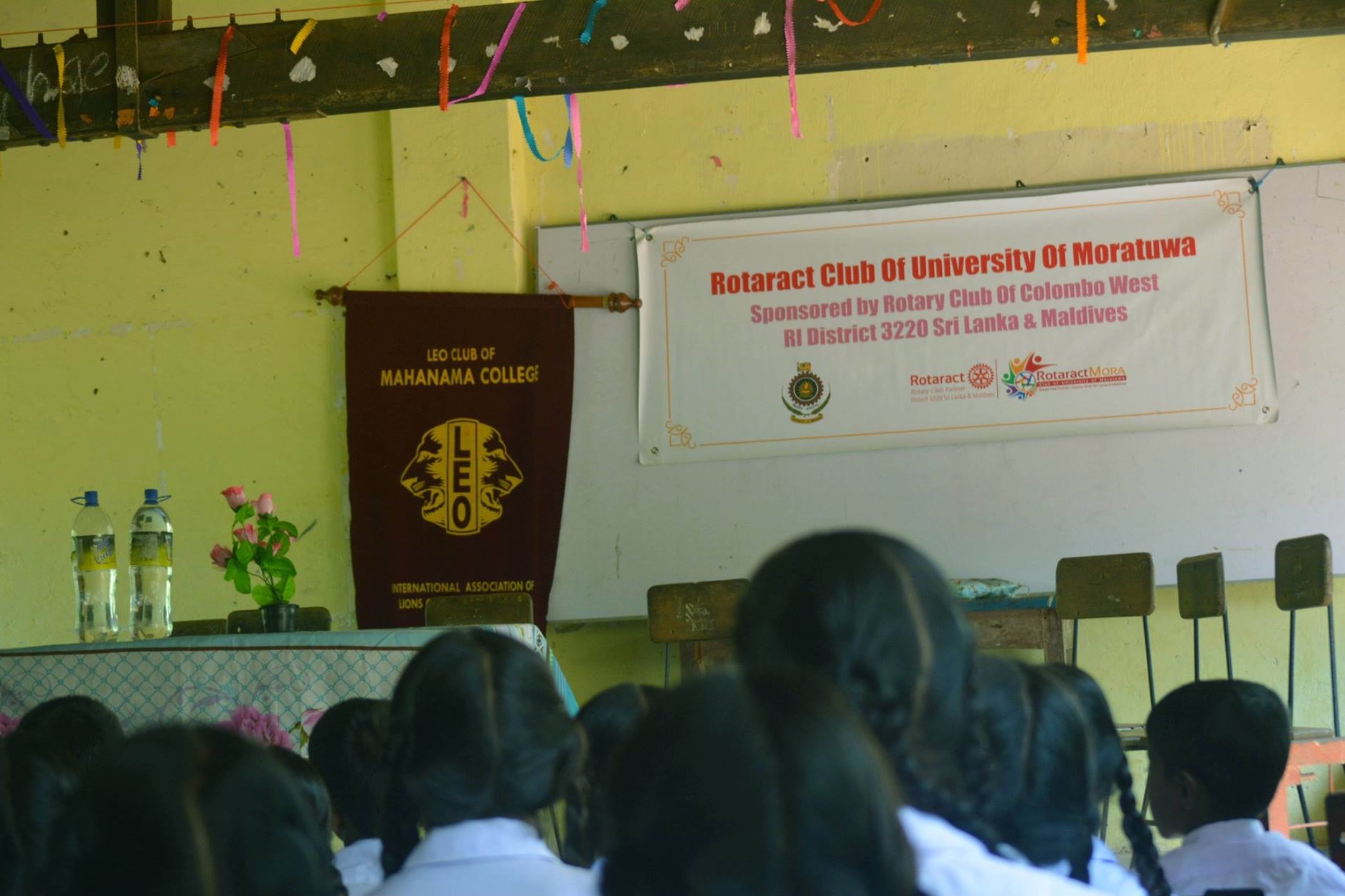 We left for the small village of Thanamalwila in the dimming sunlight at roughly 8.00 p.m. on 20th January together with the brothers of Leo Club of Mahanama College. By and by, the city faded away and the greenery surrounding the roads grew thicker. It was early in the morning when we reached our destination at 7.30 a.m. Our team from Rotaract Mora and Leo Club of Mahanama College made our way towards Hambegamuwa Janapada Kanishta Vidyalaya where the principal and the eager youngsters awaited our arrival.