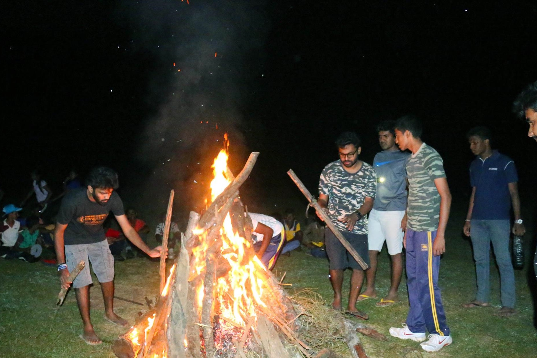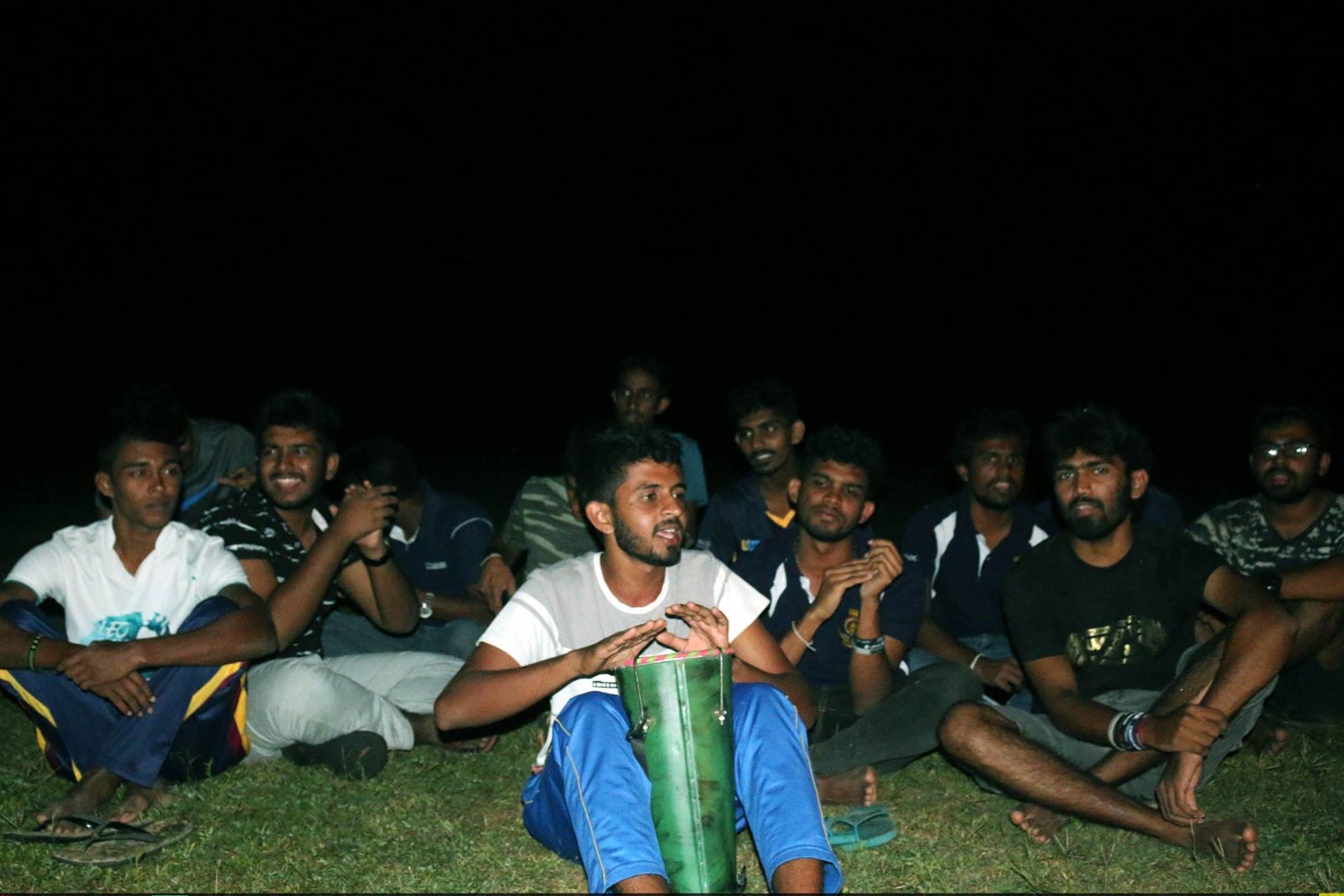 The next activity for the day was to build the bonfire for the night. We gathered the firewood which the school had brought and started building the upright stacks of wood with the help of the kids who were very eager to see it up in flames. As dusk drew nearer, we lit the fire and a massive crowd of parents, teachers, students, principals of some nearby schools of the Hambegamuwa area had gathered along with the kids to admire the dancing flames. As the dried wood burnt away, the kids sang and danced around the fire. They had prepared several dramas for the occasion and entertained us with them. Another game where the kids were given drama topics instantly and told to act was conducted there. It was amazing to see how creative they were to just craft amazing dramas within just a matter of minutes. Dinner was provided for all who arrived and was sponsored by Rotaract Club of University of Moratuwa as a special treat for everyone.