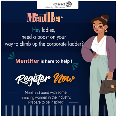 'MentHer' as the name implies, revolves around the concept of 'women supporting women,’ and it aspires to encourage women in leadership positions to support and contribute to inspiring other women in the community, to soar to the same, if not greater heights. MentHer, therefore, embodies a perfect foundational model for the concept “women supporting women”, by educating and encouraging the undergraduate women community at the University of Moratuwa to become leaders in the workspace one day.