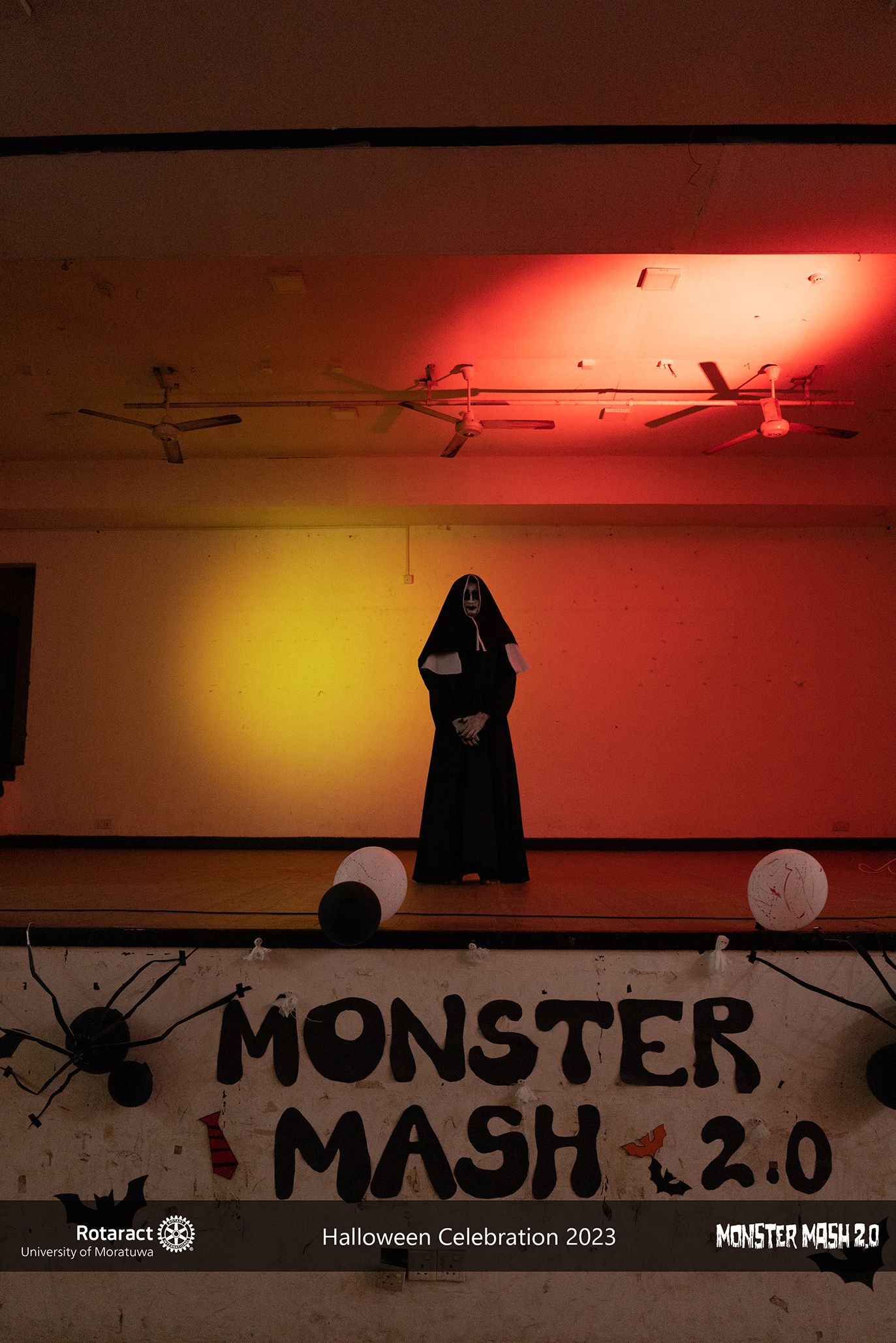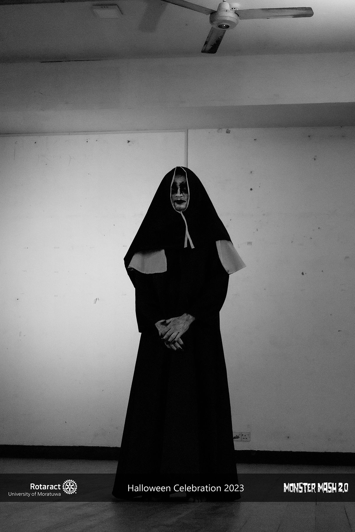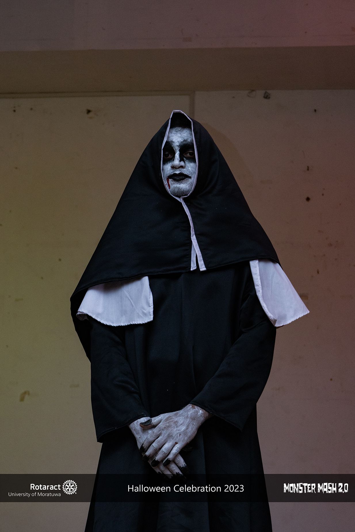 “Amidst the eerie whispers of the night, a certain wandering soul clad in her signature habit found herself drawn to the captivating enigma that was MonsterMash 2.0 at the University of Moratuwa. Yes, it was I, the Nun, wandering through the mortal realm, intrigued by the ethereal energy surrounding this otherworldly Halloween extravaganza.