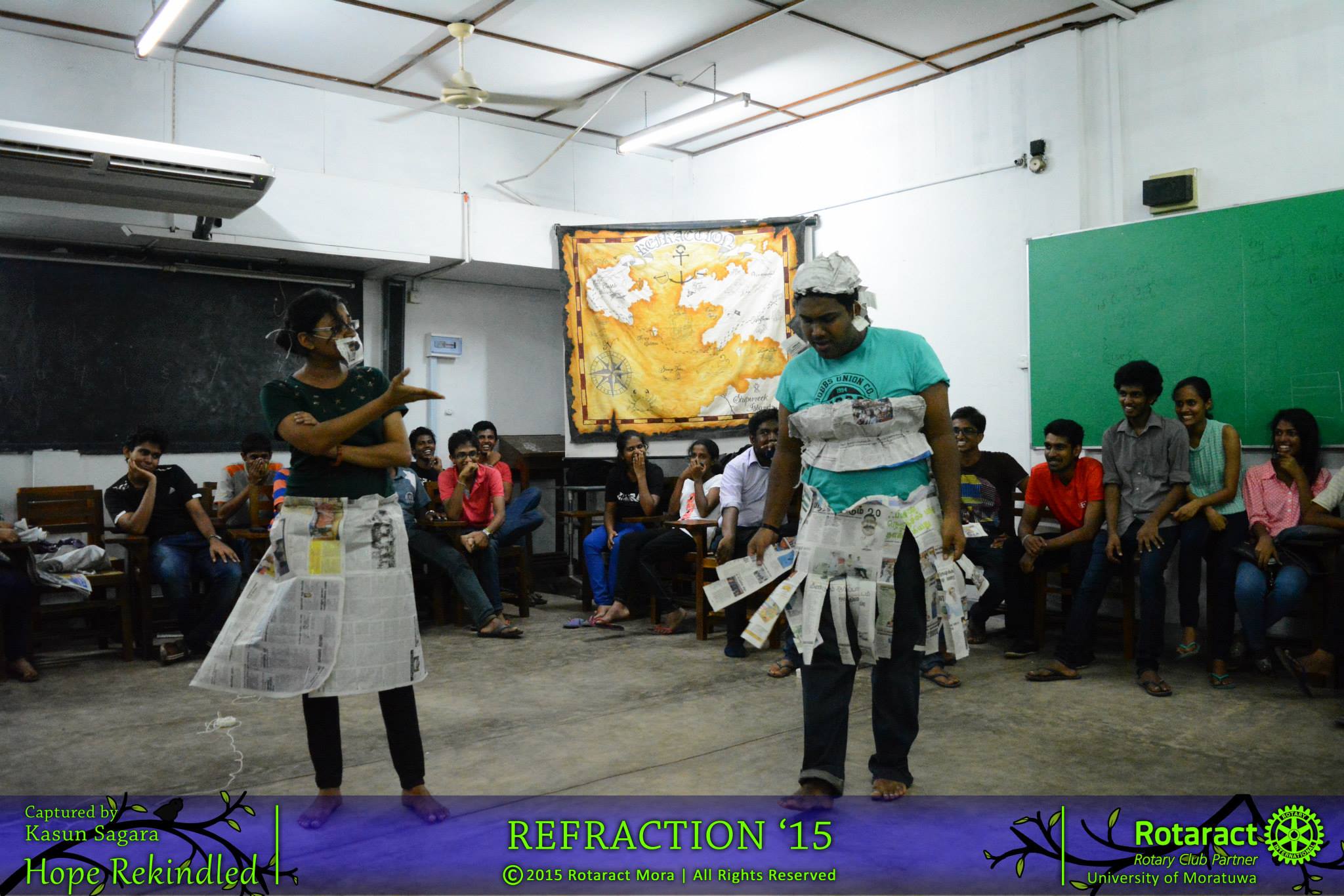 “Refraction 2015” project was chaired by Rtr. Chiranthana Costa and Rtr. Pasindu Senanayake and the whole event was planned by the committee comprised of Rotaractors from level 1. Rtr. Amindha Jayasena, Rtr. Nuwan Tharaka, Rtr. Viraj Salaka, Rtr. Hansika Sandeepani, Rtr. Sakila Sandeepani, Rtr. Lasindu Hewawasam, Rtr. Sudaraka Jayathilaka were the committee members of this project and Rtr. Tharuka Dilshaan and Rtr. Bhanuka Abegoonawaradana put their maximum effort as Directors of Club Service Avenue to make this event a success. Somehow with participation of more than one hundred participants (Undergraduates) “Refraction 2015 – The Treasure Hunt” was concluded successfully.