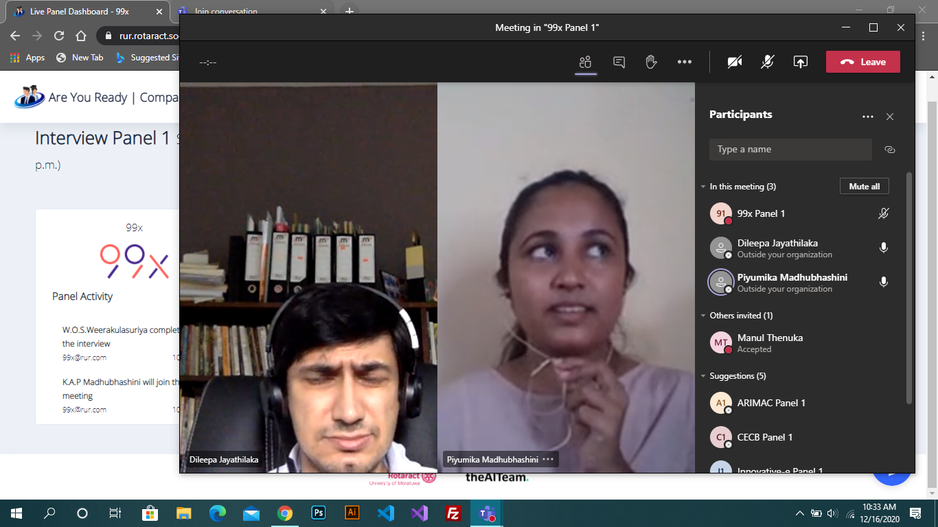 Are You Ready? 2020 which happened for the 25th time in the history of Rotaract Mora, took a turning point this year, due to the prevailing situation in the country; COVID-19. It was the same for the Resume Centre. So going digital was the only solution we were left with. Fighting against the running time, on the 9th of November we opened a portal for undergraduates to submit their CVs. It was crucial to raise awareness among the final year undergraduates about the Resume Centre. So we had our very own Rotractors as the backbone of the whole journey to coordinate the batch representatives covering all the departments in the university. All their hard work was fruitful at the end with the submission of 760+ CVs by the 18th of November. After sorting all the received CVs, they were sent to our HR specialist from John Keells Holdings and London Stock Exchange Group for their review. Then came the most important phase of the Resume Centre; coordinating undergraduates with the HR specialists for one-on-one feedback sessions on their CVs. The sessions were held across Microsoft Teams allowing all the 760+ undergraduates to get personalised feedback on their very own CVs.