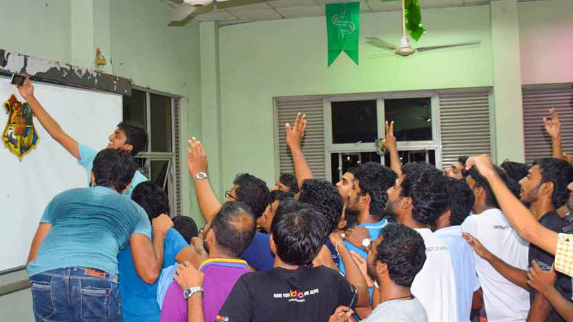 The magical evening began by following the sign that read ‘Wizard Party’ along with the illuminating footprints that led the curious Rotaractors up on the staircase on the evening of 5th of October 2016. The second floor of the Old TLM building at the University of Moratuwa premises was transformed into a mini Hogwarts! There was a whisper here and there about CAST – 4 which is the signature project of the club service avenue organized by Rotaract Club of University of Moratuwa, but the organizing committee of the event managed to hold the curiosity of the Rotaractors up to the brink until the last second. The familiar tune from Harry Potter series that was played as the Rotaractors entered the hall made the atmosphere even more surreal.