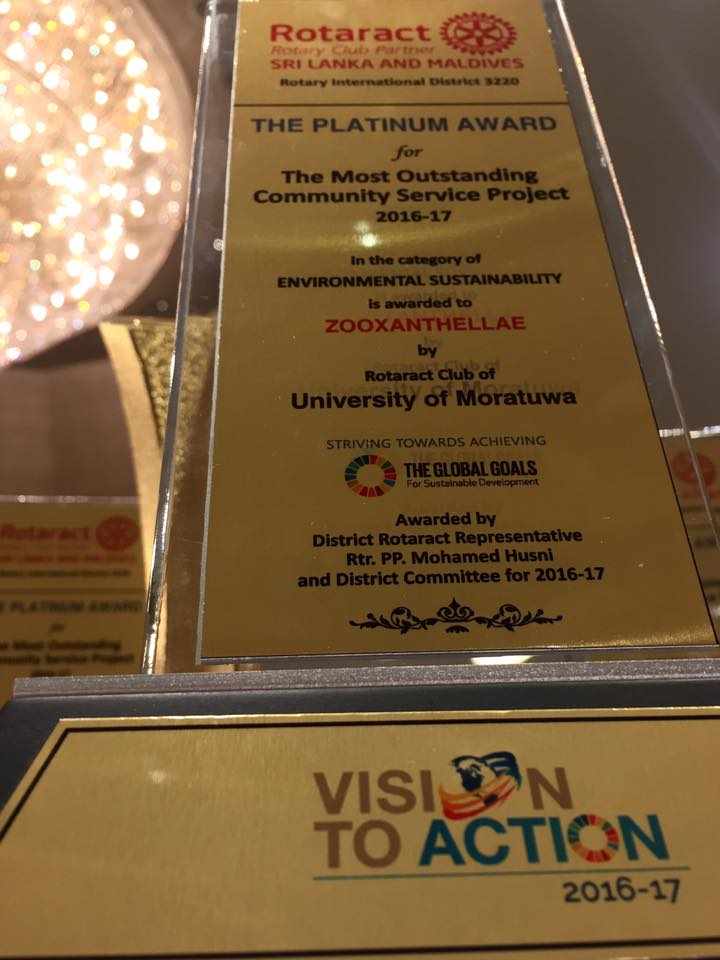 - Most Outstanding Community Service Project in the Category of ‘Environmental Sustainability’ – Platinum Award – Zooxanthellae