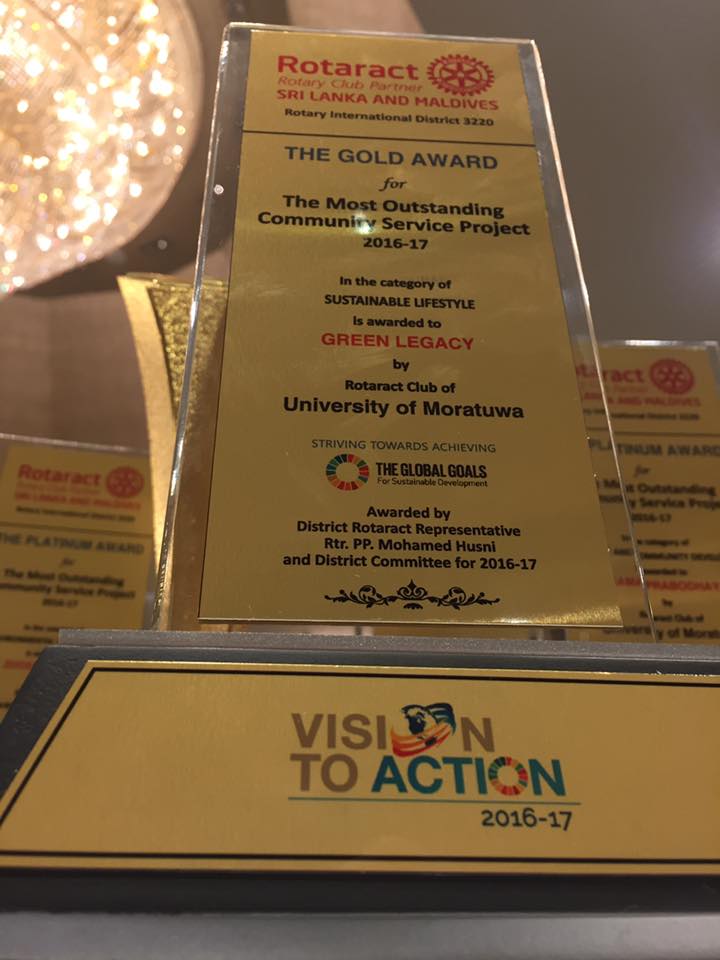 - Most Outstanding Community Service Project in the Category of ‘Sustainable Life Style’ – Gold Award – Green Legacy