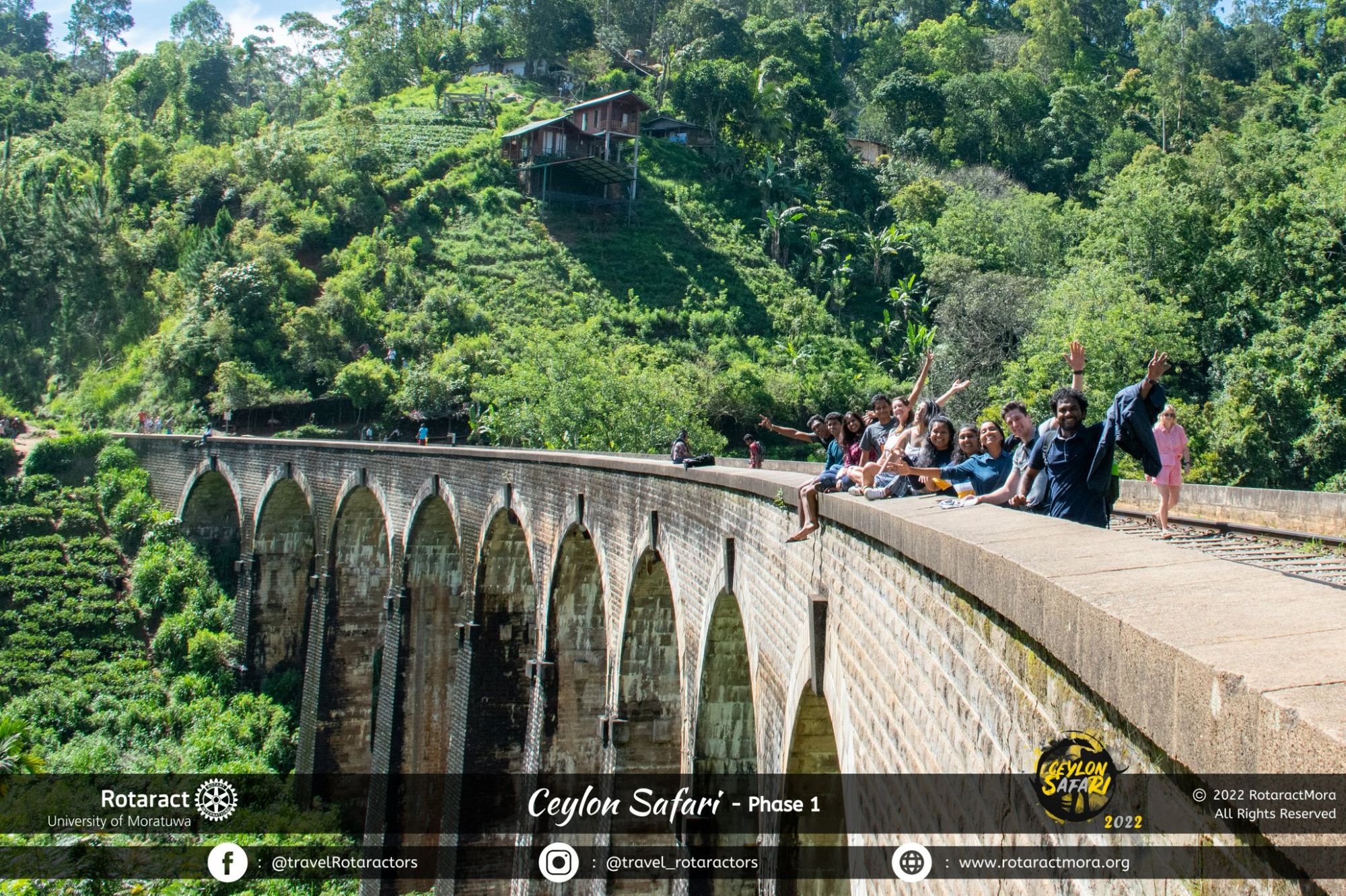 After walking through a train tunnel with friendly bats, we finally reunited with Rtr. Michelle Jaramillo from Columbia and her escort, Mr. Worldwide Chamod Gihantha at Nine Arch Bridge. After hearing Michelle’s travel adventures and sipping a fresh king coconut at Nine Arch Bridge the crew walked. And walked. And walked. Aaaannd finally walked to our little home, the AC bus. It was indeed a wild warm up exercise for the next hike to Ella Rock. Luckily, since I was fasting due to Ramadhan I dodged the hike and joined my partner in crime Linoja, where we ended up testing TikTok in the middle of nowhere hahaha!