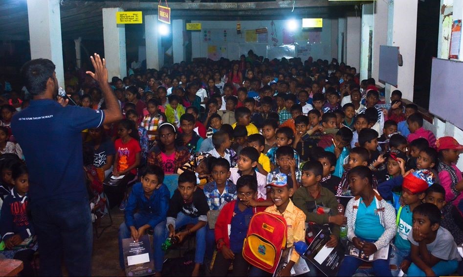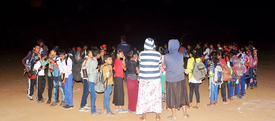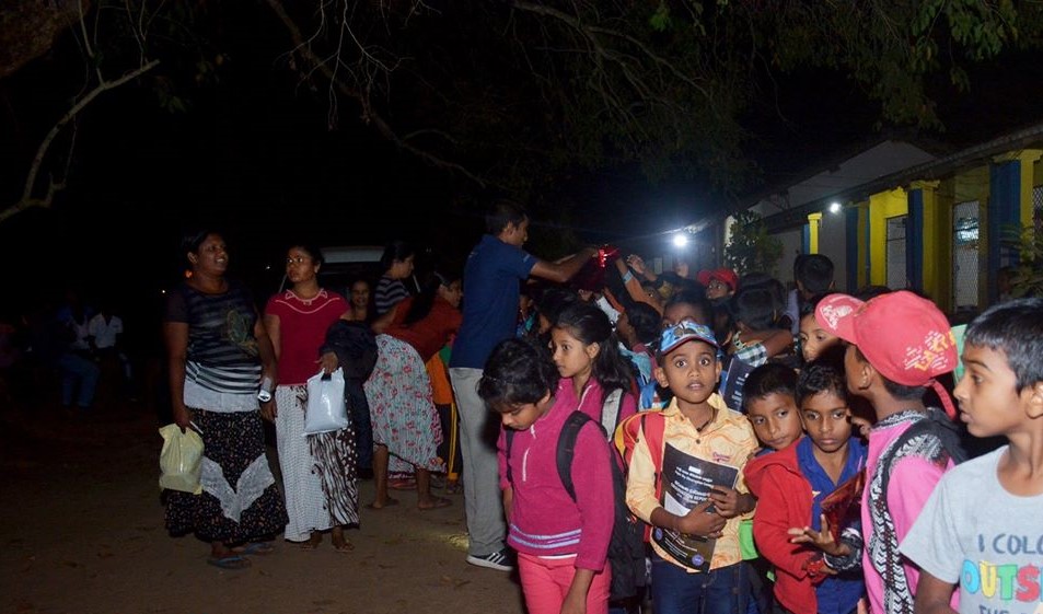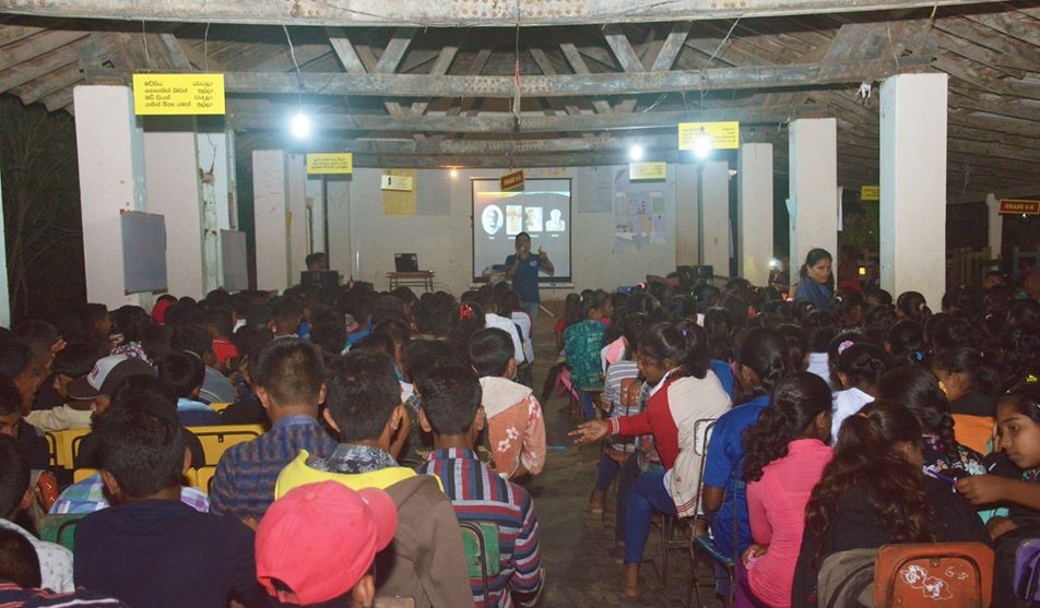 The Ayyalas and Akkilas from Colombo have been hyping us on this for a long time now and we just couldn’t wait till the 20th of February dusked. At around 6 pm, they began to arrive at Nochchiyagama with all sorts of eerie equipment. Although they had been traveling for more than 8 hours, they showed no signs of exhaustion. They bustled about setting up the equipment and attending to other necessities. In the meantime, I turned around and craned my neck; the hall was filled with more than 400 children and more were pouring in. I also observed rows of parents and teachers busy at the back as they brought in stocks of meals and refreshments for the night.