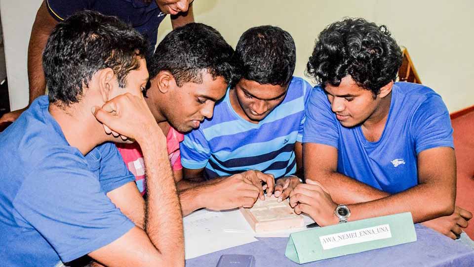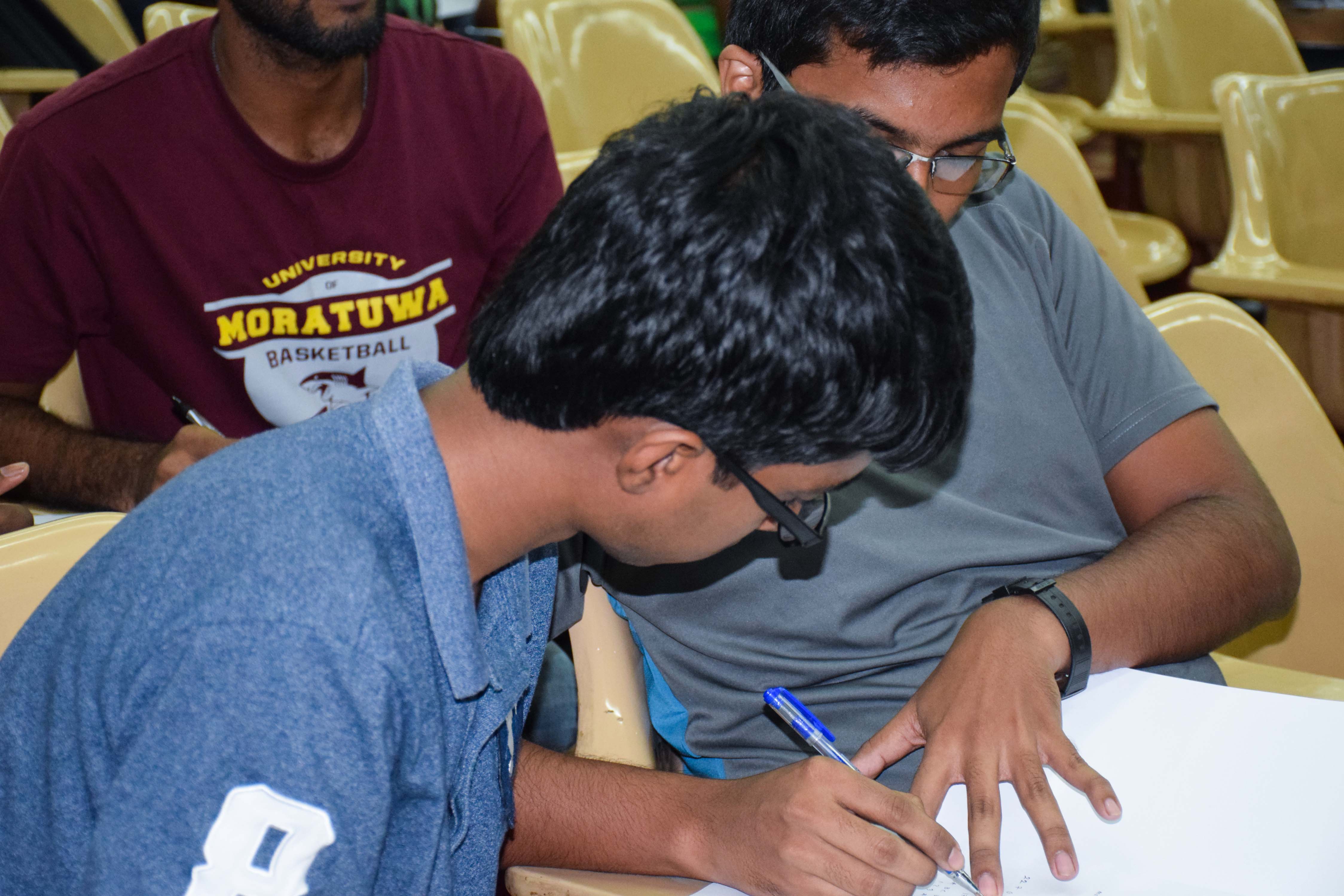 We planned the competition to be of two main phases. First phase was to check the contestants’ logical approach towards the questions. These questions were chosen from a question pool assembled by Rtr. Chirath Diyagama and Rtr. Damitha Lenadora. The second phase consisted of memory games, patterns and some other surprises. Many of the undergraduates had never even heard about this Sri Lankan traditional puzzle named “Magul Parakkuwa”. The two teams that made it to the final round of IQ Master got lucky enough to experience the mechanism first hand.
