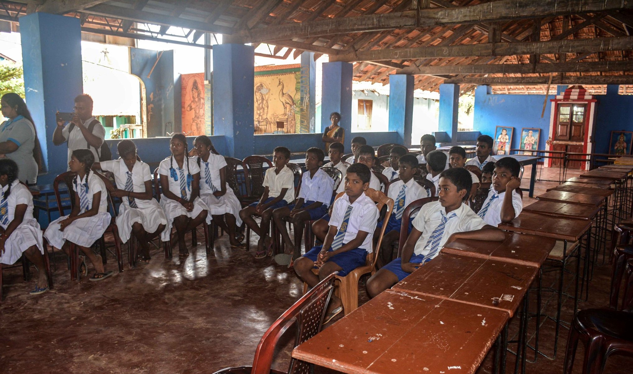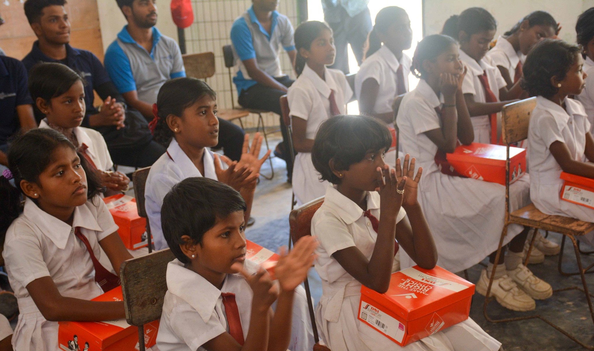 Then it was time to visit the first school under the project, “Avarangal Nadaraja Ramlinka Vidyalaya”. An assembly had been arranged gathering the principal, teachers, and students where we donated new shoes and books. Afterwards, we were offered refreshments, but the greatest offering was the grateful smiles on those innocent little faces.