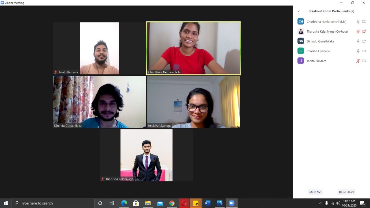 I was asked to be a part of ‘Resume Centre’, ‘Heads- up’ and panel coordination of project ‘RUR’. I was lucky to be a part of this amazing project. This is where I got to work with Nikith, Asel and Bimbi. Even though we there were a ton of sleepless nights, hours long Zoom meetings, WhatsApp calls we weren’t tired or stressed, we enjoyed and bonded. Getting scolded from my mother for missing lectures AND sleep was worth it, because we were able to help a lot of undergraduates. The best (publishable) memory from panel coordination days was when the four of us had to pull and all-nighter and we are working with on Zoom all night with music on, and our friend Asel went full on silent mode. Turned out, that he felt asleep while being on the meeting even with the music blasting! So, we basically continued working (don’t tell him but of course while making fun of him ;p) and he just left it like that until the laptop shutdown. Those days are the definition of we didn't know we were making memories, we were just having fun… Simply, "ඒ දවස් ටික නං හොඳටම කළා".