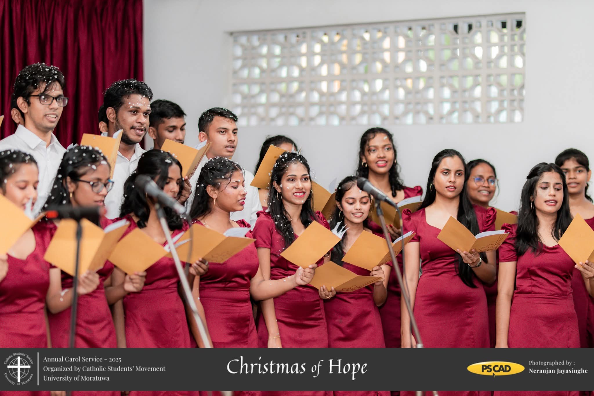 The first time our beloved seniors from the Catholic student Society at the University of Moratuwa asked me to join the choir, a knot formed in my throat. Me? In a formal choir? I lived with music in my life for years-strumming guitar strings, marching for brass music- but choral music felt like an unexplored galaxy of my life. The raw emotion of blending my voice with many others, pitching precise notes, following strict rhythms… It was intimidating.