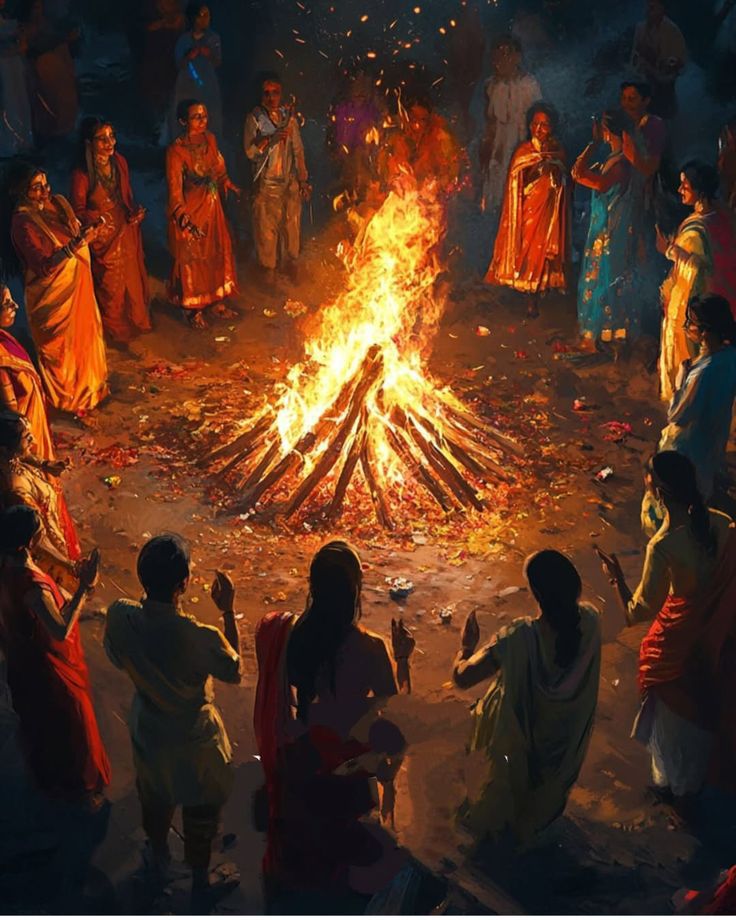 The day before Thai pongal Tamils celebrate Bhogi pongal. On Bhogi, people discard old and derelict things and concentrate on new things causing change or transformation. At dawn, people light bonfires with logs of wood, other solid-fuels, and wooden furniture at home that are no longer useful. This marks the end of the year's accounts and the beginning of new accounts on the first day of the harvest on the following day. Lord Indhran is worshipped during the Pongal festival for the blessing of rains.