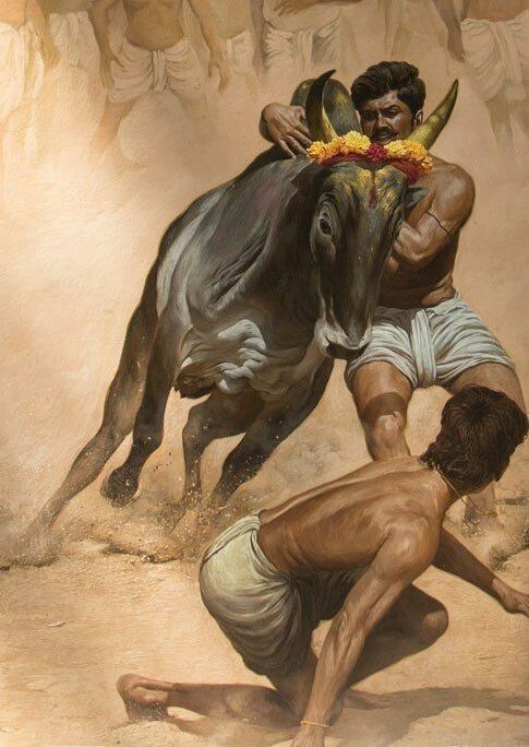 In forests male animals fight before mating with female So that the new born will be healthy, But in villages that was not possible we cannot let bulls fight each other because they were involved in farming, So Tamlis created a game jallikkattu before 2000 years.