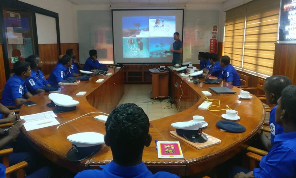 To serve towards the best interests of the environment, it is important that every contributor is well informed of the prevailing situation. Hence, Zooxanthellae organized a workshop for Sri Lanka Navy divers to provide them with the technical knowledge and skills with regard to the placement of steel structures on the ocean bed to facilitate the growth of corals. The workshop was conducted by Mr. Thomas Le Barre, marine biologist, on the 18th of June 2018 at the Southern Navy Base.